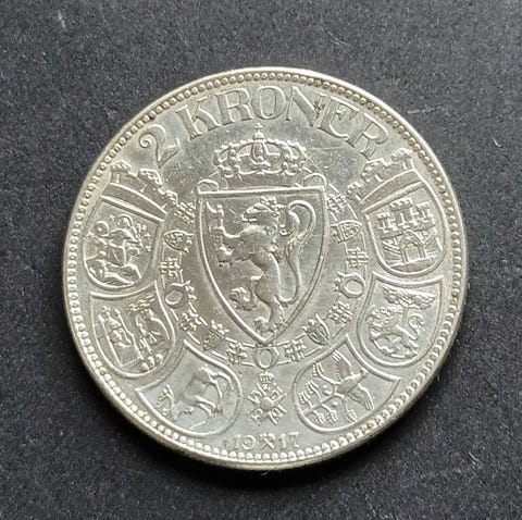 Norge 2 kr 1917 i sølv.