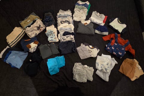 Du bør have nok børnetøj til, at du ikke behøver at starte vaskemaskinen konstant. Overvej om du kan købe noget brugt: For eksempel bliver babybodyer let snavsede, og det er godt at have rigeligt af dem i en familie med babyer. Smukke børnetrøjer og kjoler bliver ofte for små efter kun enkelte brug, og det er godt at sælge dem og dermed forlænge tøjets levetid. Hvad angår overtøj, kan vinter- og mellemsæsonens overtræksdragter eksempelvis købes brugt, da særligt overtræksdragter fra kvalitetsmærker tåler flere børns kravlen og tumlen i sne og sjap.