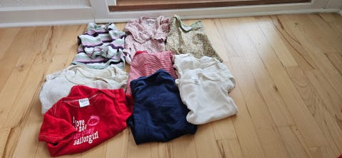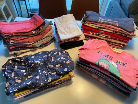 Du bør have nok børnetøj til, at du ikke behøver at starte vaskemaskinen konstant. Overvej om du kan købe noget brugt: For eksempel bliver babybodyer let snavsede, og det er godt at have rigeligt af dem i en familie med babyer. Smukke børnetrøjer og kjoler bliver ofte for små efter kun enkelte brug, og det er godt at sælge dem og dermed forlænge tøjets levetid. Hvad angår overtøj, kan vinter- og mellemsæsonens overtræksdragter eksempelvis købes brugt, da særligt overtræksdragter fra kvalitetsmærker tåler flere børns kravlen og tumlen i sne og sjap.
