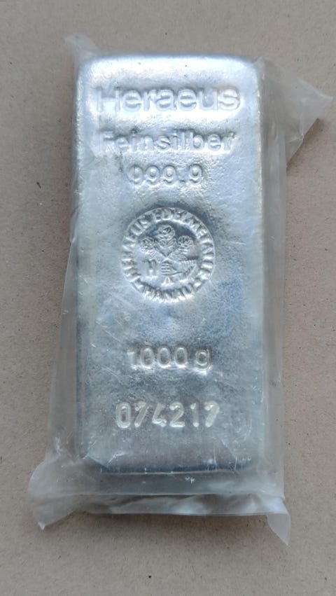 Sølvbarre Heraeus feinsilber 1 kg