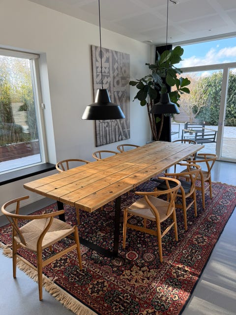 Stort plankebord med bordben i stål