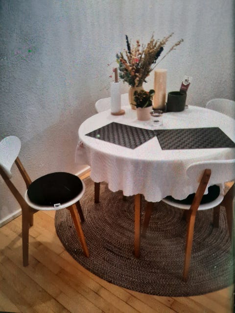 Rundt spisebord + tre stole
