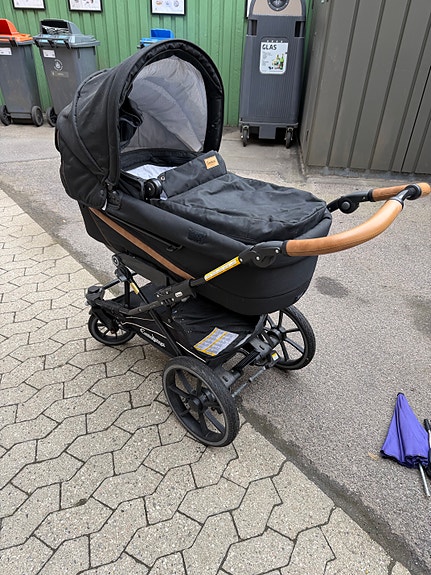 Læderbetrukket barnevogn