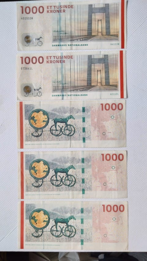 Danmark, sedler, 1000 kr... FLOTTE.
