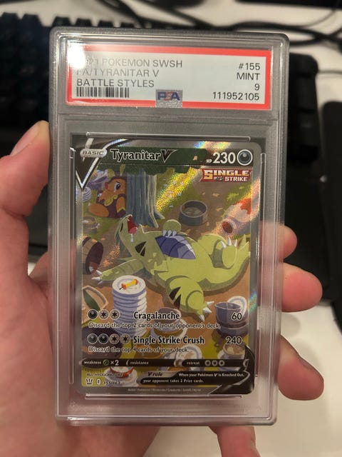 1.500 kr.Pokémon Tyranitar V Alt Art Swsh PSA 9Odense C2 dageKøb nuLastbil i bevægelseFiks færdigFøj til favoritter.
