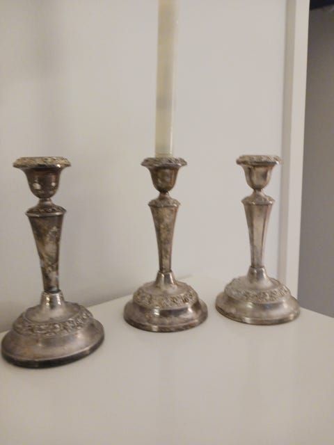 3 lysestager i pletsølv