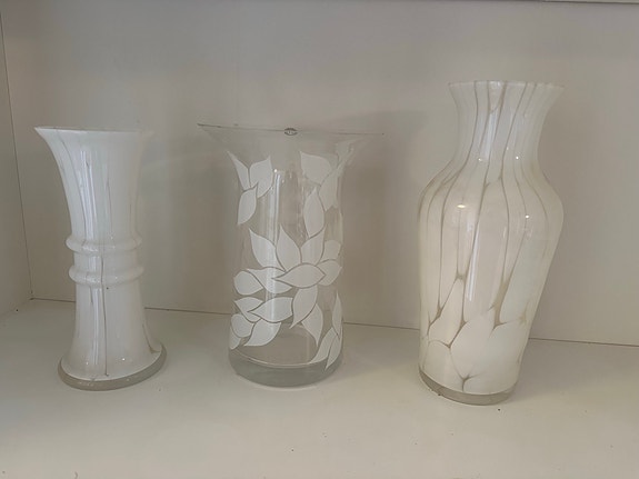 Høj hvid vase i glas