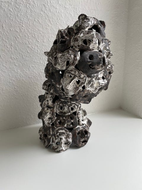 Skulptur i sort og hvid keramik