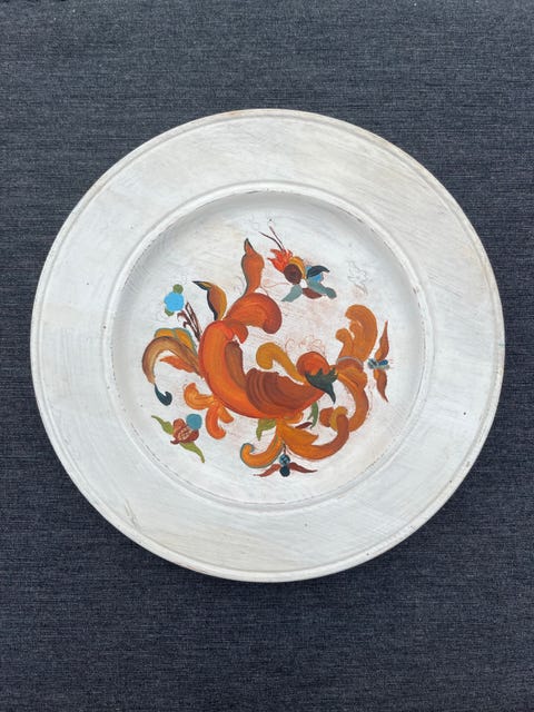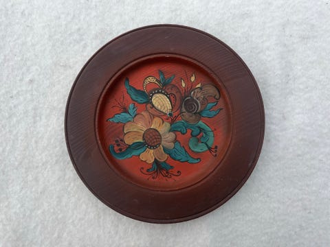Rosemalet træ tallerken