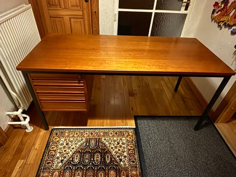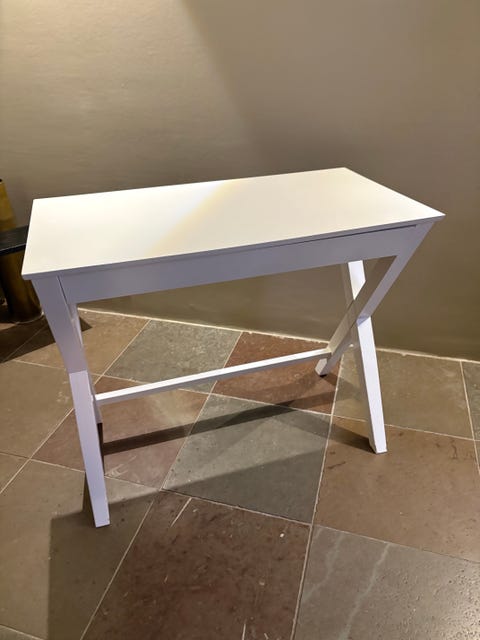Find et brugt skrivebord til en lavere pris. På DBA er der 3.327 annonce(r), der sælger skriveborde. ## Et lille skrivebord kan gøre stor glæde Et skrivebord, der er unødvendigt for en anden, kan være det helt rigtige til dine behov. Især et skrivebord i massivt træ eller et elektrisk skrivebord kan være et dyrt køb, og du kan finde et velegnet produkt væsentligt billigere brugt. Et godt skrivebord har en velegnet højde for brugeren eller kan justeres. Når du gennemser annonce(r)ne, bør du tjekke bordets dimensioner og sammenligne dem med den bedste arbejdshøjde for dig.