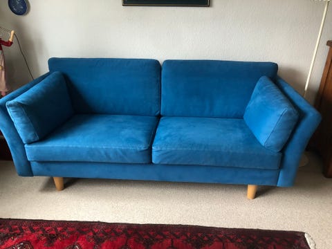Blå velour sofa