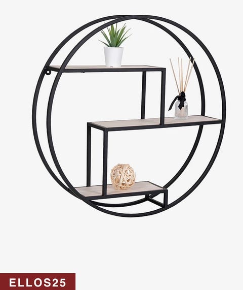 Rund hylde - sort ramme