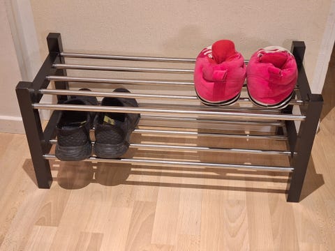Sko reol i træ m/ 2 metal hylder