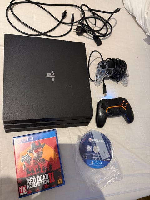 Playstation 4 inkl. VR pakke med briller, kamera og sticks samt 2 controllere