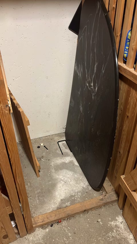 Bord i træ og rød marmor