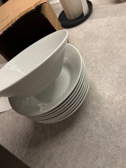 Royal Copenhagen Musselmalet Riflet Porcelæn Tallerken og Skål Sæt Blå og Hvid