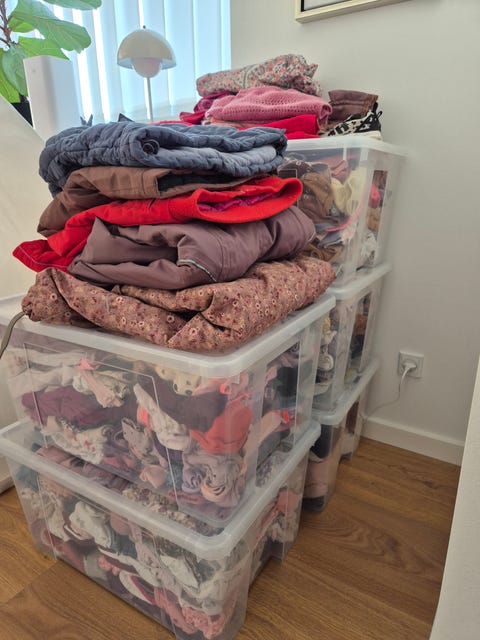 Du bør have nok børnetøj til, at du ikke behøver at starte vaskemaskinen konstant. Overvej om du kan købe noget brugt: For eksempel bliver babybodyer let snavsede, og det er godt at have rigeligt af dem i en familie med babyer. Smukke børnetrøjer og kjoler bliver ofte for små efter kun enkelte brug, og det er godt at sælge dem og dermed forlænge tøjets levetid. Hvad angår overtøj, kan vinter- og mellemsæsonens overtræksdragter eksempelvis købes brugt, da særligt overtræksdragter fra kvalitetsmærker tåler flere børns kravlen og tumlen i sne og sjap.