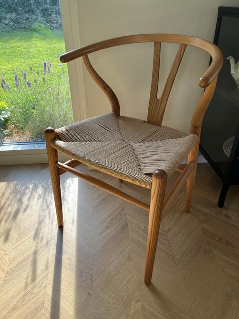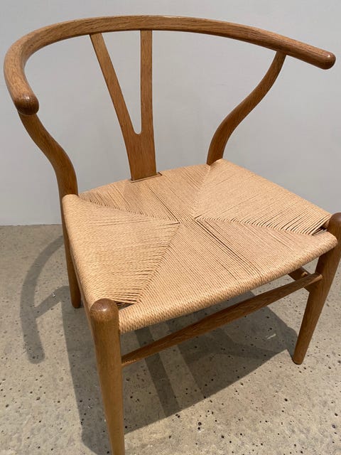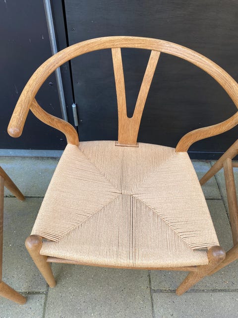 Hans J Wegner CH24 Wishbone Stol ( y-stolen ) i olieret eg og Sæde i papirgarn