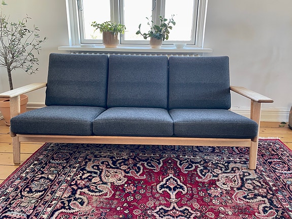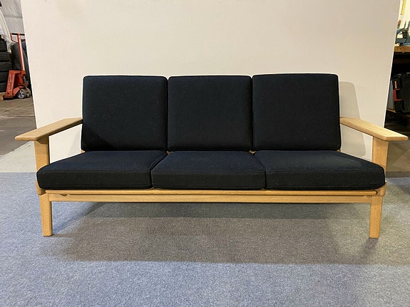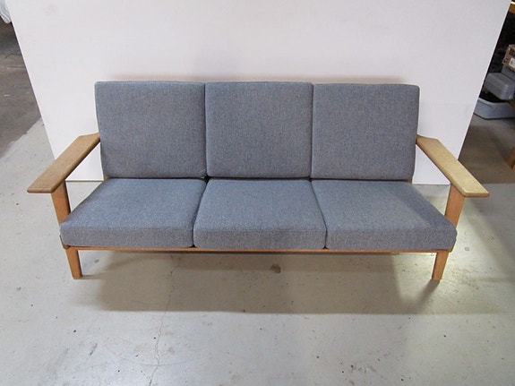 Hans J. Wegner Ge-290/3 Pers.Sofa i mørkegrå Hallingdal 180 uld, stel Egetræ.