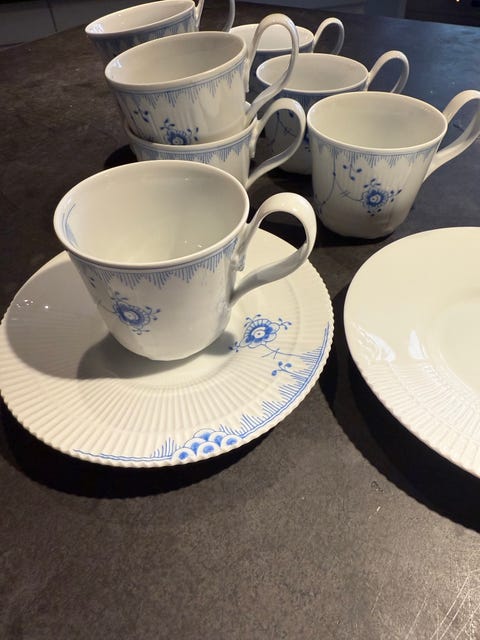 Royal Copenhagen Blå Mega Riflet kaffekopper med underkopper porcelæn hvid blå