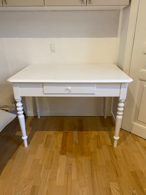 Find et brugt skrivebord til en lavere pris. På DBA er der 3.510 annonce(r), der sælger skriveborde. ## Et lille skrivebord kan gøre stor glæde Et skrivebord, der er unødvendigt for en anden, kan være det helt rigtige til dine behov. Især et skrivebord i massivt træ eller et elektrisk skrivebord kan være et dyrt køb, og du kan finde et velegnet produkt væsentligt billigere brugt. Et godt skrivebord har en velegnet højde for brugeren eller kan justeres. Når du gennemser annonce(r)ne, bør du tjekke bordets dimensioner og sammenligne dem med den bedste arbejdshøjde for dig.