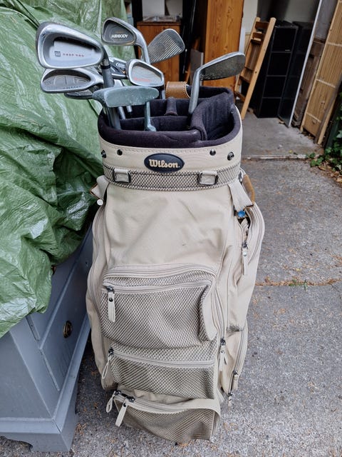 Golfkøller og taske og vogn