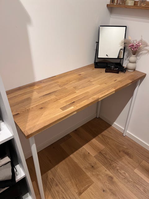 Find et brugt skrivebord til en lavere pris. På DBA er der 3.650 annonce(r), der sælger skriveborde. ​​## Et lille skrivebord kan gøre stor glæde Et skrivebord, der er unødvendigt for en anden, kan være det helt rigtige til dine behov. Især et skrivebord i massivt træ eller et elektrisk skrivebord kan være et dyrt køb, og du kan finde et velegnet produkt væsentligt billigere brugt. Et godt skrivebord har en velegnet højde for brugeren eller kan justeres. Når du gennemser annonce(r)ne, bør du tjekke bordets dimensioner og sammenligne dem med den bedste arbejdshøjde for dig.