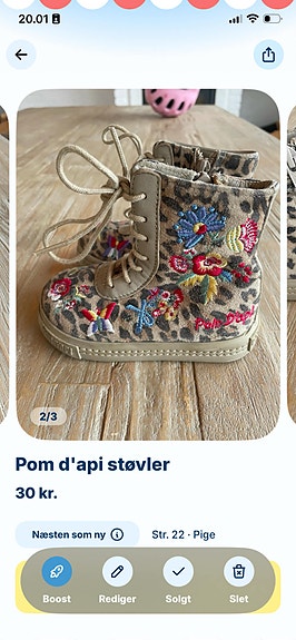 Kvalitetssko er ofte ret dyre. Brugt kan du få f.eks. vinterstøvler til en lavere pris, og du kan endda købe et ekstra par vinterstøvler til de morgener, hvor støvlerne ikke har nået at tørre efter leg i sneen. Mellemsæsonsko, børnesneakers og gummistøvler bliver hurtigt for små, efterhånden som børnene vokser. Har du planer om at købe brugte børnesko, skal du tjekke skoenes stand i annoncen og se størrelsesskemaet på producentens hjemmeside.