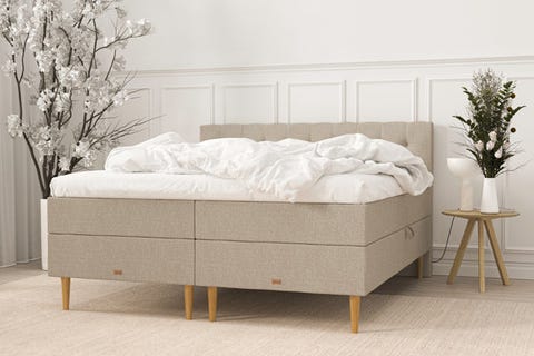 En boxmadras er en populær sengeløsning, der er let at samle: Det er som regel nok at vride eller skrue benene på, og dreje sengen den rigtige vej. Set fra et design synspunkt er boksmadrassen også alsidig, for ved at skifte sengebetræk eller tilføje en separat sengegavl bliver sengen som ny!