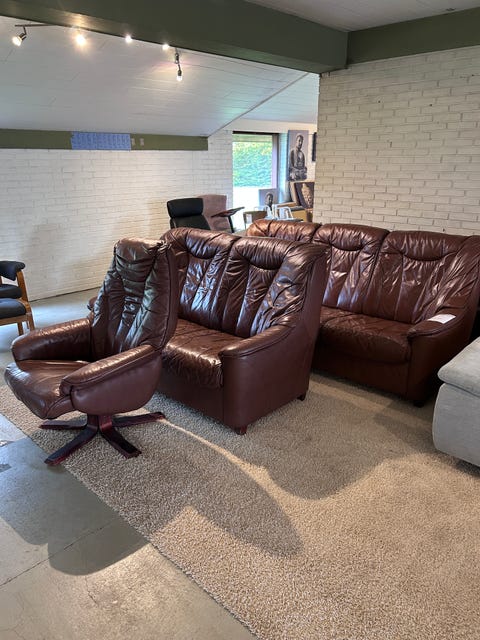 Læderstue sofa + 2 stole