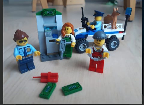 5 kr.LEGO minifigurer politi og røvere med diverse udstyr LEGOHørning3 dageLastbil i bevægelseFiks færdigFøj til favoritter.