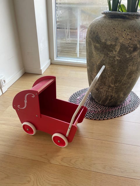 Rød dukkevogn i træ