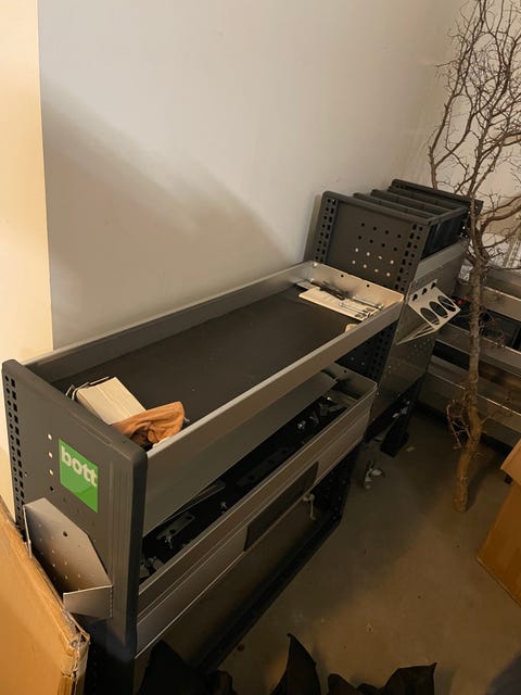 Reol med skuffer og opbevaringsbokse