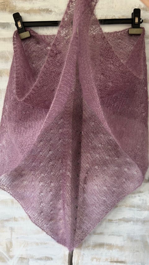 Strikket sjal rosa-lilla