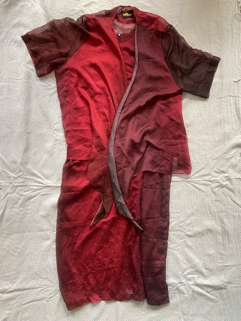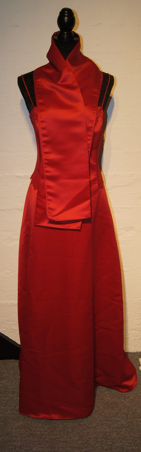 LANG RØD KJOLE MED JAKKE