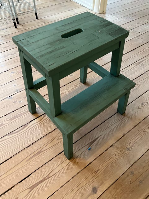 Grøn træskammel med to trin