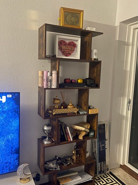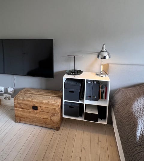 Gulvlampe og langt spejl.