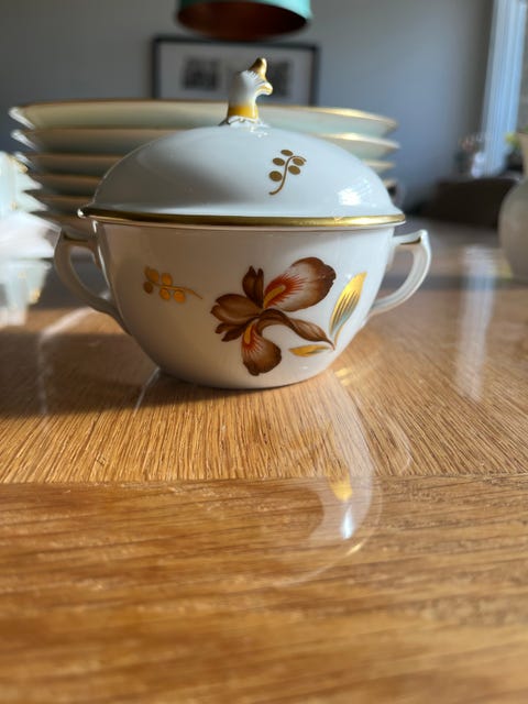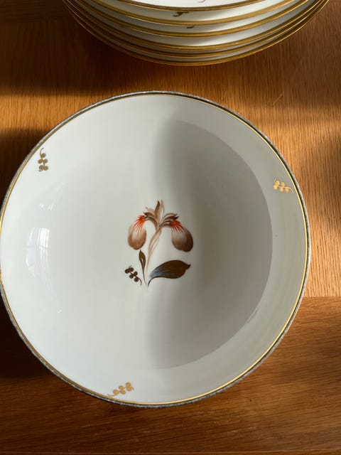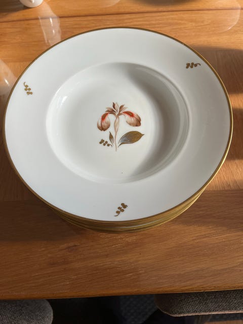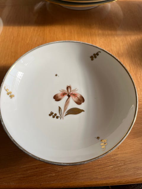 6 stk. Royal Copenhagen Brun Iris dybe Tallerken med Blomstermotiv og Guldkant