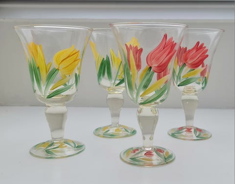 150 kr.Fire flotte vintage vinglas med blomster / tulipaner motiv / dekorationKøbenhavn NV1 dagKøb nuLastbil i bevægelseFiks færdigFøj til favoritter.