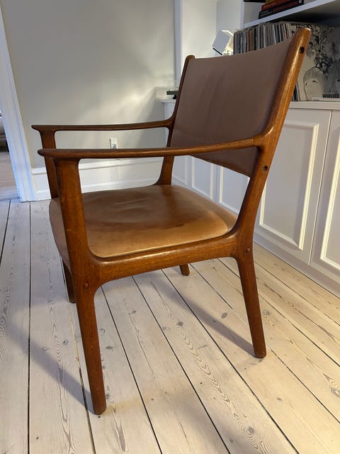 Armstol i læder og træ