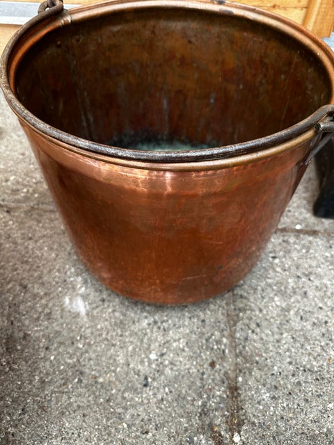 Antik kobberspand med hank