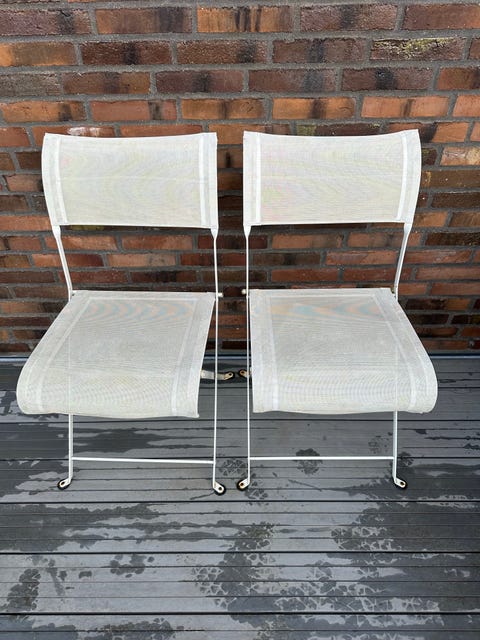 Hvide metalstole med netstof