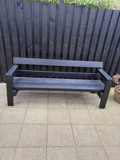 Sort solid træbænk med armlæn