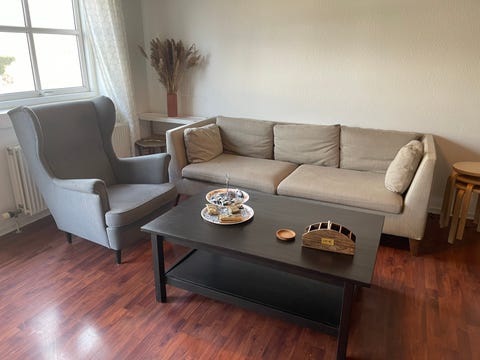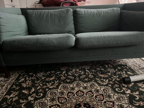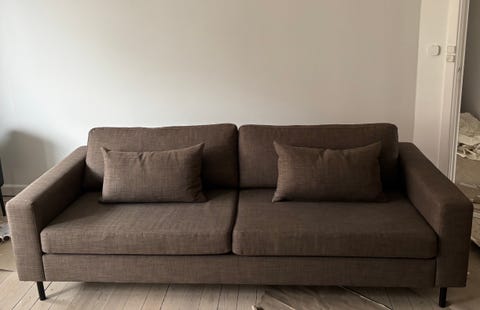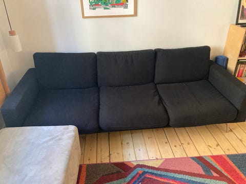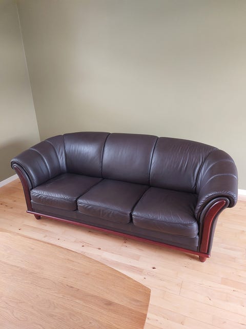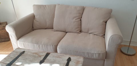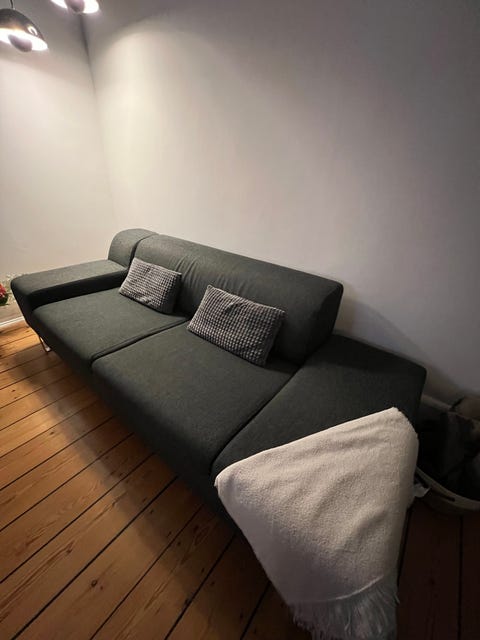 1 stofsofa med træben gives væk