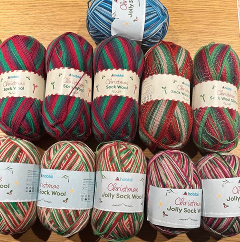 Garn og diverse tilbehør.