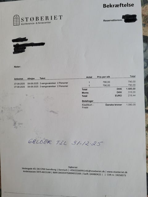 Gavekort til Oure højskole købes.