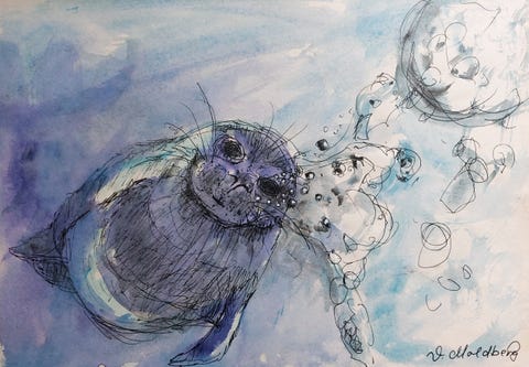 Sæl bader i iskoldt vand.