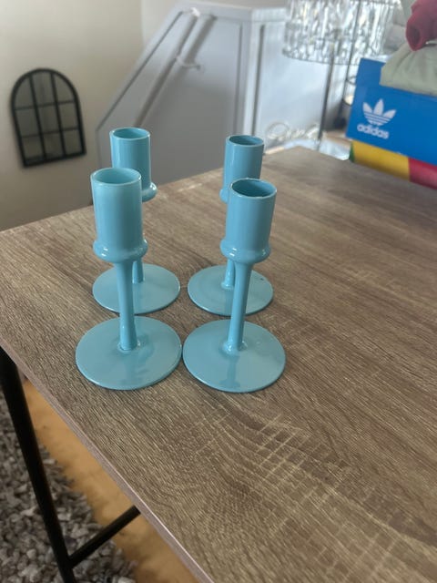 4 lyserblå lysestager