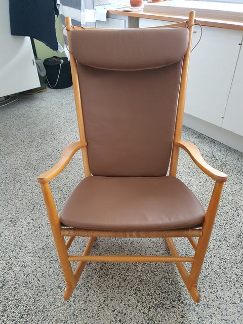 Stol i træ med læderhynder
