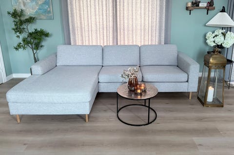 Grå sofa med chaiselong